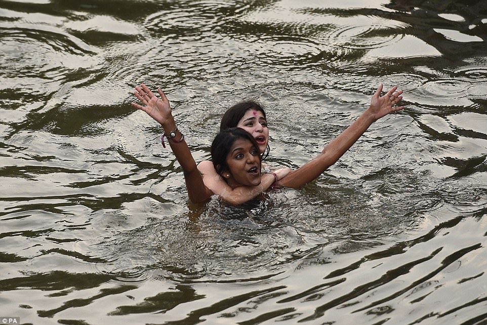 Φοιτητές του φημισμένου Πανεπιστήμιο του Κέιμπριτζ πέταξαν τα ρούχα τους για να να γιορτάσουν το τέλος των εξετάσεων στη ετήσια γιορτή σε ποταμό της πόλης που μαζεύονται όλοι για να γιορτάσουν το τέλος της περιόδου.