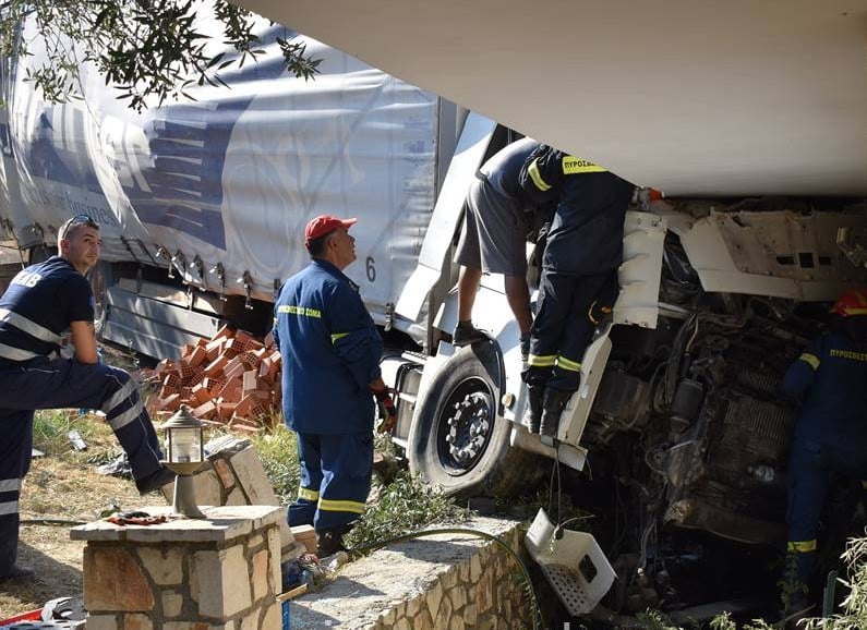 Ο οδηγός εγκλωβίστηκε στο φορτηγό και παρέμεινε εκεί για αρκετή ώρα έως ότου καταφέρουν να τον βγάλουν οι πυροσβέστες που είχαν καταφθάσει στο σημείο