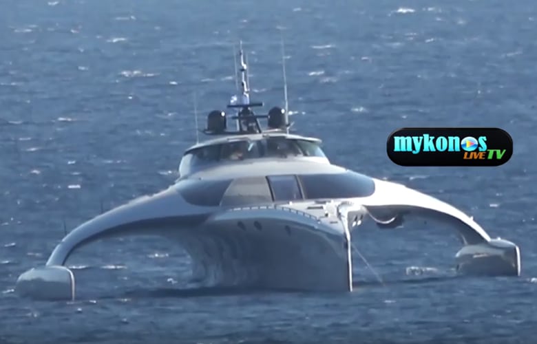 Τα «έχασαν» κάτοικοι και τουρίστες της Μυκόνου μόλις είδαν το υπερσύγχρονο φουτουριστικό γιοτ, με τον υπερμοντέρνο σχεδιασμό που έριξε άγκυρα στον κόλπο της Ψαρούς.