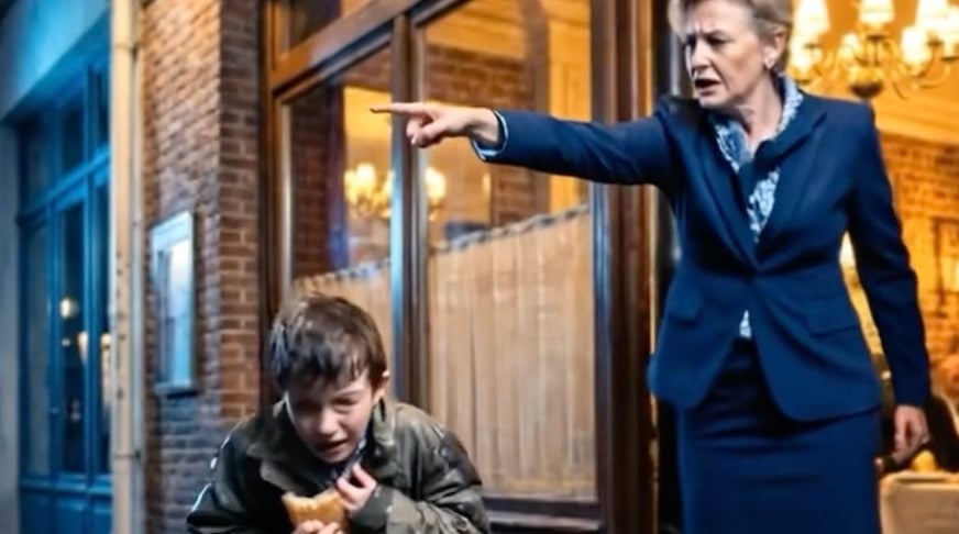 «Φύγε από εδώ!» ούρλιαξε η ιδιοκτήτρια του πολυτελούς γαλλικού εστιατορίου «Ο μαύρος αστακός», η Κατερίνα Λυμπέρη, καταβρέχοντας με παγωμένο νερό το άστεγο αγόρι που στεκόταν μπροστά στην είσοδο.