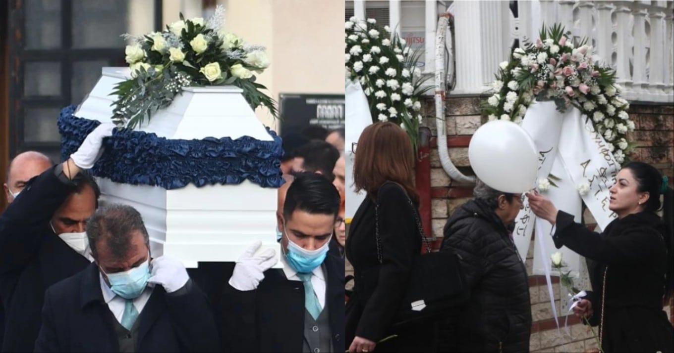 Κουφέτα, λευκά μπαλόνια και άσπρα τριαντάφυλλα μοίραζαν οι φίλες της 23χρονης Ιφιγένειας Μίτσκα στον Ιερό Ναό Πέτρου και Παύλου στα Γιαννιτσά, όπου εψάλη η εξόδιος ακολουθία της 23χρονης κοπέλας, η οποία επέβαινε στο βαγόνι 3.