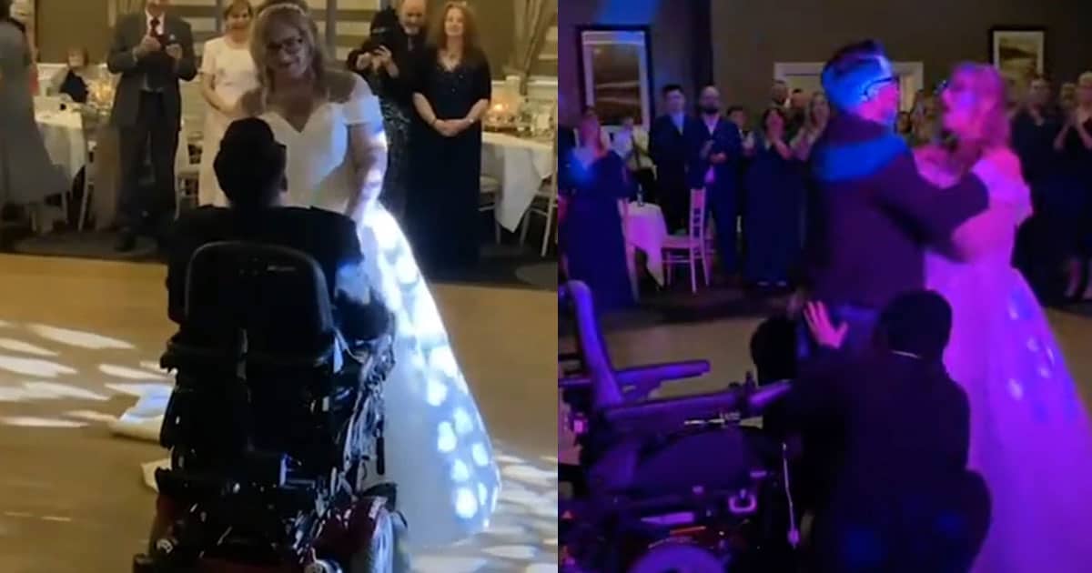 Ένας γαμπρός με σκλήρυνση κατά πλάκας, ο οποίος είναι σε αναπηρικό καροτσάκι εδώ και πέντε χρόνια για να μετακινείται, σόκαρε τους φίλους και την οικογένειά του όταν σηκώθηκε όρθιος και χόρεψε για πρώτη φορά με τη νύφη του.