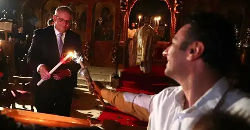 Ο Scott Morrison ανέβασε στον λογαριασμό του στο Facebook τις ευχές του για καλό Πάσχα στους Έλληνες ομογενείς μαζί με φωτογραφίες από την τελετή.
