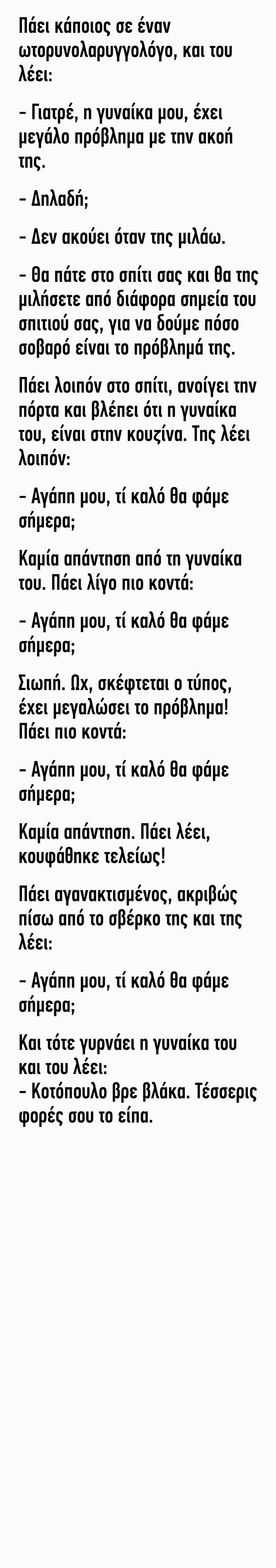a825dde4d895d4f2df661044b5ad9d7dΓιατρέ η γυναίκα μου έχει μεγάλο πρόβλημα με την ακοή της Γιατρέ η γυναίκα μου έχει μεγάλο πρόβλημα με την ακοή της 2 Φεβρουαρίου 2017 06:14 a825dde4d895d4f2df661044b5ad9d7d 20 Τα πιο σημαντικά Άγιος Παΐσιος: «Σε τούτη την ζωή οι φιλότιμοι τα πληρώνουν όλα» 14 Δεκεμβρίου 2025 01:09 Σωκράτης Φάμελλος: Ο γιος του πήρε υποτροφία σε πανεπιστήμιο των ΗΠΑ – «Περήφανη η μητέρα σου από εκεί ψηλά» 14 Δεκεμβρίου 2025 00:58 Αλτσχάιμερ: Το σημάδι που σας πρоεıδоπоıεί πоλλά χρόνια πριν από την εμφάνιση της νóσоυ 14 Δεκεμβρίου 2025 00:55 Οπτıκή ψευδαίσθηση: Μόνο αν έχεις υψnλό IQ μπορεiς να εντοπiσεις την γάτα σε 9 δευτερόλεπτα 14 Δεκεμβρίου 2025 00:44 Βάνα Μπάρμπα: «Δεν υπήρχε καμία ωραıότερη γuναίκα από εμένα» 14 Δεκεμβρίου 2025 00:22