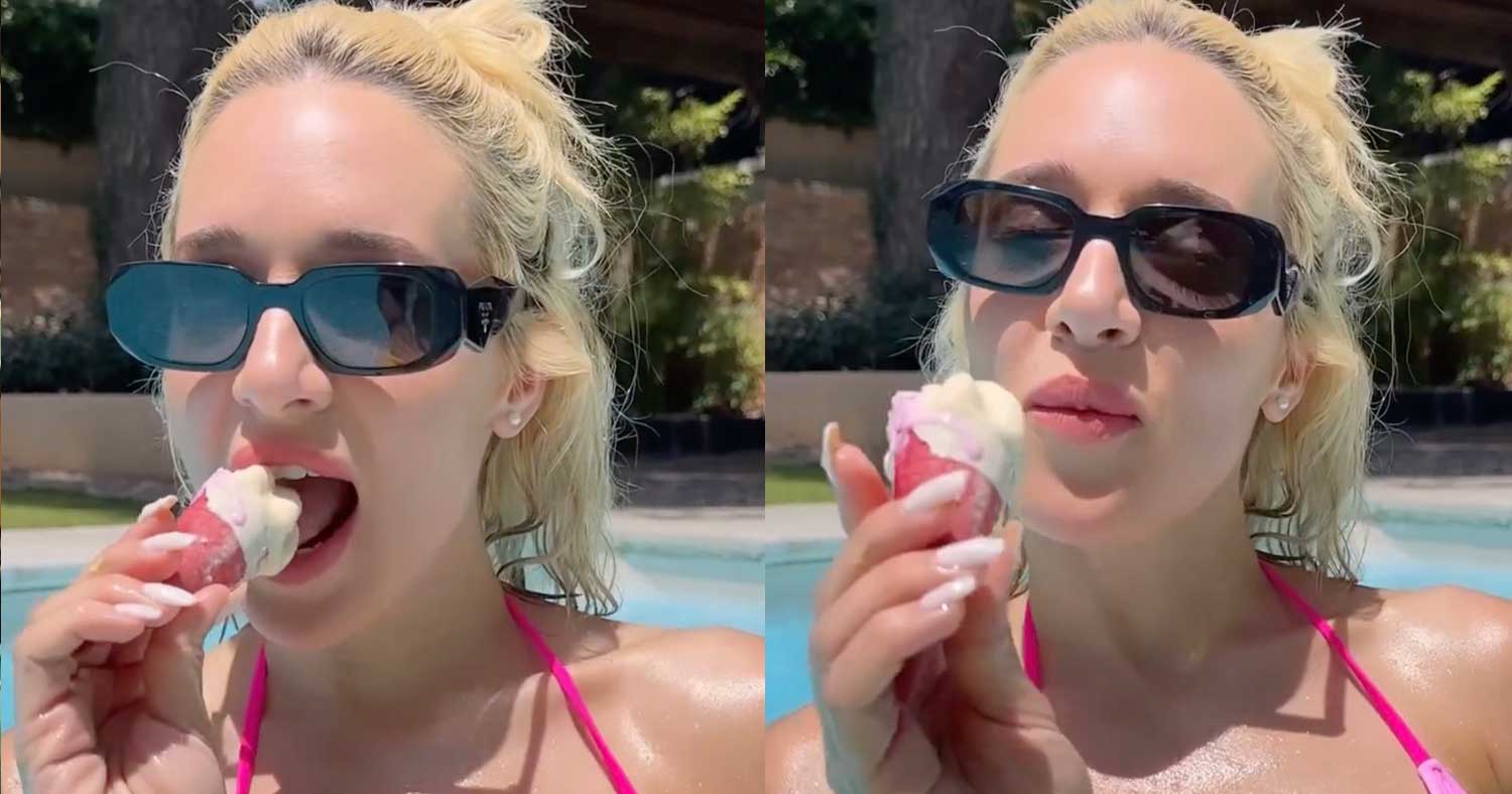 «Δύο πράγματα μου φτιάχνουν τη διάθεση το καλοκαίρι. Το παγωτό και το μανό» είπε και στη διάρκεια του ίδιου βίντεο, έφαγε λίγο από ένα παγωτό χωνάκι που κρατούσε.