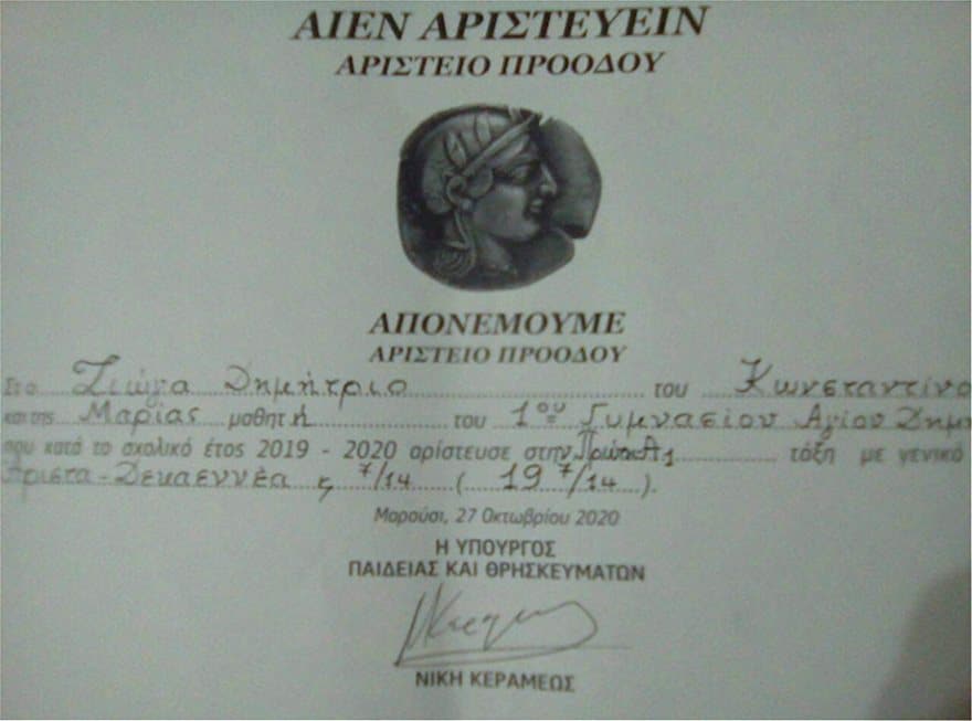 Στην Ε’ τάξη λαμβάνει μέρος στον Πανελλήνιο Διαγωνισμό Φυσικών Δημοτικού (Αριστοτέλης) και στην ΣΤ’ Δημοτικού συμμετέχει με το σχολείο του στις βιβλιοδρομίες των εκπαιδευτηρίων ΓΕΙΤΟΝΑ όπου παίρνουν την 1η τιμητική διάκριση σχολείων Αθηνών. Έχει διαβάσει πάνω από 120 λογοτεχνικά ιστορικά βιβλία. Στις εκθέσεις του παίρνει συνεχώς Άριστα. Χωρίς να του χαριστεί τίποτα και κανένας. Με πολύ κόπο, αγώνα, αγάπη για μάθηση και τεράστιες προσπάθειες συγκέντρωσης. Ο Δημήτρης σήμερα πηγαίνει γυμνάσιο, στην Β’ Γυμνασίου. Σε δημόσιο γυμνάσιο με 3 καθηγητές παράλληλης στήριξης. Τα 19 και τα 20 πέφτουν βροχή. Βγάζει συνολικό βαθμό 19 και 7/14, πρωτεύει μεταξύ των συμμαθητών του και αριστεύει σ όλα τα τμήματα της 1 ης Γυμνασίου. Πηγαίνει Αγγλικά όπου κι εκεί αριστεύει κάθε χρόνο. Σε λίγο θα δώσει για Lower. Γαλλικά κάνει μόνος του και τα πηγαίνει θαυμάσια, επίσης χωρίς φροντιστήριο. Πόσα πιο πολλά να πω για να δείξω πως ο αυτισμός δεν είναι εμπόδιο; Οι επιτυχίες θα συνεχιστούν. Και θέλω να τον δω μια μέρα πολύ ψηλά. Γιατί ο Δημήτρης το αξίζει και με το παραπάνω και είμαστε όλοι σίγουροι πως θα κερδίσει στη ζωή με την αξία του, όπως πάντα! Ποιος είπε πως τα άπιαστα όνειρα δεν γίνονται πραγματικότητα; Ο Δημήτρης το απέδειξε με δύναμη ψυχής, πολύ κόπο και προσπάθεια. Χωρίς ιδιαίτερα και φροντιστήρια. Μόνος του! Με την στήριξη και την βοήθεια μου μόνο και με την δική του περισσότερο! Του αξίζουν πολλά μπράβο μα περισσότερο η αγάπη και η αποδοχή σας στον διαφορετικό τρόπο σκέψης του. Και ο σεβασμός σας….