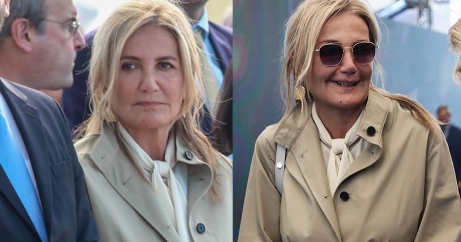 Τον πρωθυπουργό συνόδευσε στην τελετή η σύζυγός του Μαρέβα Μητσοτάκη, η οποία έκανε μια casual chic πρωινή εμφάνιση σε γήινους τόνους.