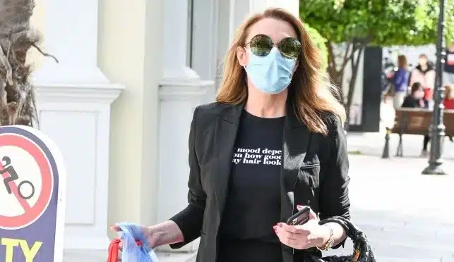 Ο φωτογραφικός φακός του hellomagazine.com την απαθανάτισε να κάνει τα ψώνια της στα καταστήματα της Κηφισιάς. Φορώντας τη μάσκα της και με total black ντύσιμο έκανε τις αγορές της ενώ όταν είδε τον φωτογράφο όχι μόνο δεν δυσανασχέτησε αλλά αντιθέτως χαιρέτησε και χαμογέλασε.
