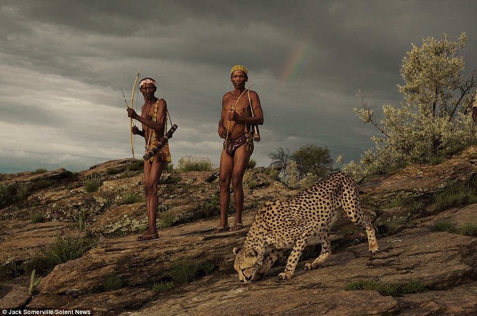 Ζουν σε απόλυτη αρμονία με την φύση. Στις φωτογραφίες του Jack Somerville, απαθανατίζονται δυο κυνηγοί που κυνηγούν παρέα με ένα αιλουροειδές. Το αρσενικό τσιτάχ που δεν έχει εξημερωθεί τους ακολουθεί στην προσπάθεια τους να βρουν τροφή.