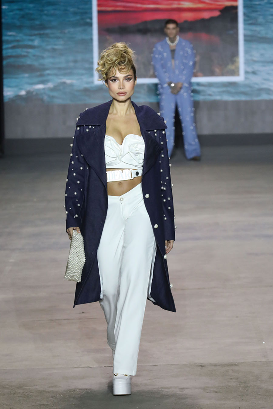 Η Ιωάννα Τούνη έλαμπε μέσα στην εντυπωσιακή δημιουργία της κολλητής της. Επειδή, όμως, δεν έχει εμπειρία στο μόντελινγκ δυσκολεύτηκε αρκετά στην πασαρέλα, καθώς -όπως δήλωσε και η ίδια στα παρασκήνια– το περπάτημα με νυφικό δεν είναι εύκολο ούτε για τις επαγγελματίες μοντέλα. H δημοφιλής influencer παραπάτησε μερικές φορές, αλλά δεν έχασε το χαμόγελό της και συνέχισε κανονικά το catwalk, κερδίζοντας τις εντυπώσεις και τα χειροκροτήματα των θεατών, ανάμεσα στους οποίους βρισκόταν και ο σύντροφός της Δημήτρης Αλεξάνδρου, που την καμάρωνε και την ενθάρρυνε.