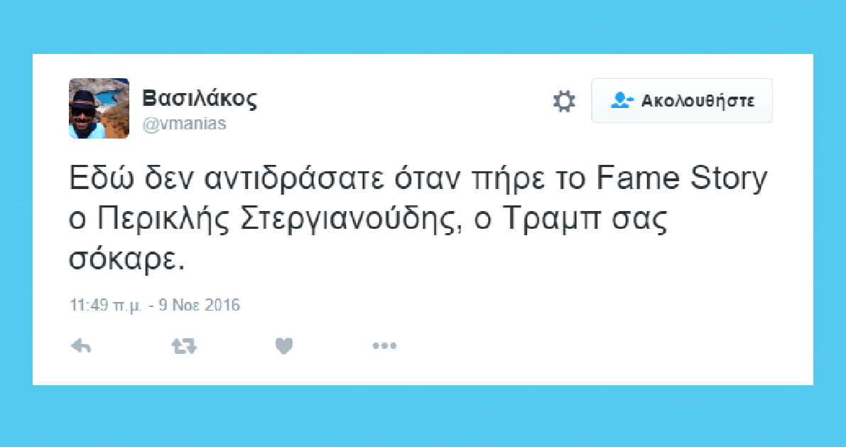 Εδώ δεν αντιδράσατε όταν πήρε το Fame Story o Περικλής Στεργιανούδης, ο Τραμπ σας σόκαρε.