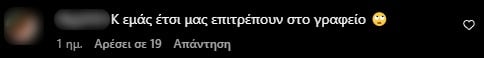 Οι γυναίκες followers της δεν πήραν με καλό μάτι αυτό το ποστ. Φαντάστηκαν τι θα γινόταν, αν οι ίδιες άρχιζαν να κάνουν γυμναστική στο γραφείο όπου εργάζονται.