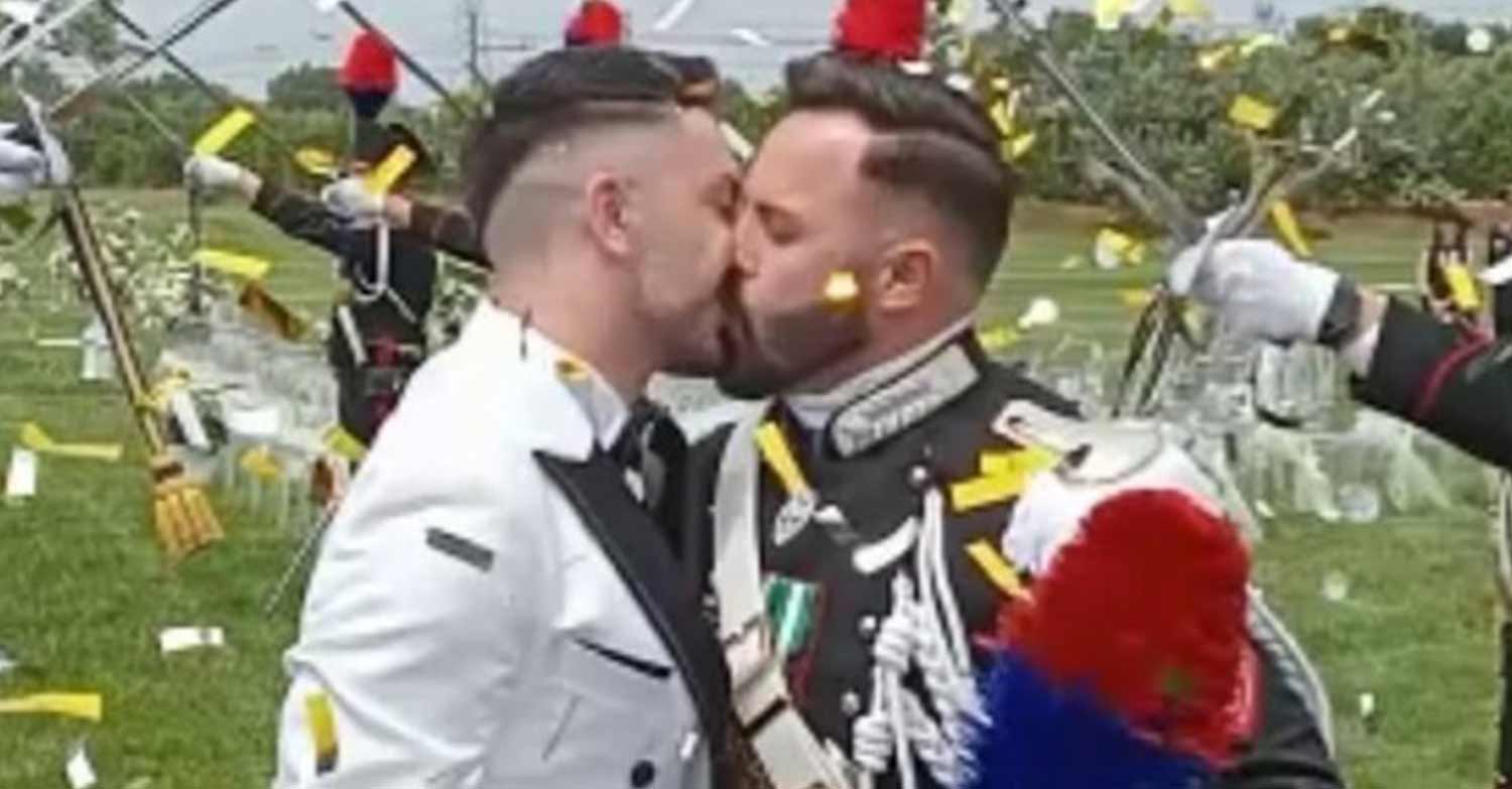 H τελετή οργανώθηκε σε αγροικία κοντά στο Μπρίντιζι της Κάτω Ιταλίας, με την συμμετοχή συγγενών και φίλων του ζευγαριού, το οποίο ανήρτησε φωτογραφίες στο Instagram. «Διάλεξα την ίδια ημέρα του γάμου των γονιών μου, για μένα ήταν πολύ σημαντικό», δήλωσε ο καραμπινιέρος. Ο σύντροφός του εργάζεται στην κεντρική περιοχή της Ρώμης Κάμπο Ντέι Φιόρι.