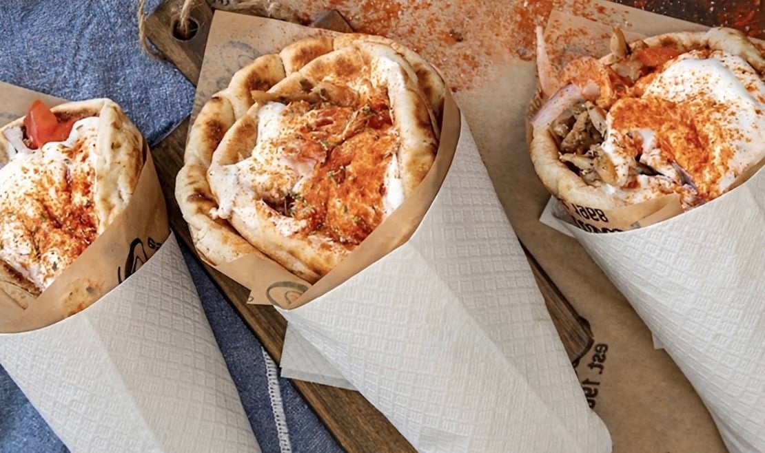 Ούτε πατάτες, ούτε σος, ούτε τζατζίκια, μουστάρδες και κέτσαπ… Κι όλα αυτά αγκαλιασμένα από μια λαχταριστή πίτα που καταφέρνει το ακατόρθωτο: Και τρυφερή και τραγανή. Και καλοψημένη και χωρίς να πνίγεται στο λάδι. Φτιαγμένη ιδανικά για ν’ απογειώνει τα υπόλοιπα υλικά. Και να μετατρέπει κάθε μπουκιά σε «λουκούμι» που αγαλλιάζει τον ουρανίσκο…