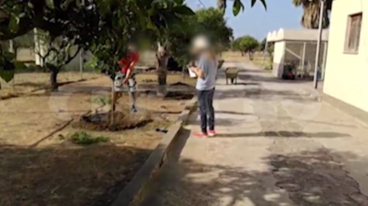 Με καπέλο το 15χρονο παιδί προσπαθεί να προστατευτεί από τον μεσημεριανό ήλιο όση ώρα με τσουγκράνα περιποιείται τον κήπο. Στο βάθος, άλλα δύο αγόρια σκυμμένα πάνω σε λάκκους δεν σταματούν ούτε λεπτό. Με τσάπες σπάνε πέτρες και με τα χέρια τους ξεχορταριάζουν.