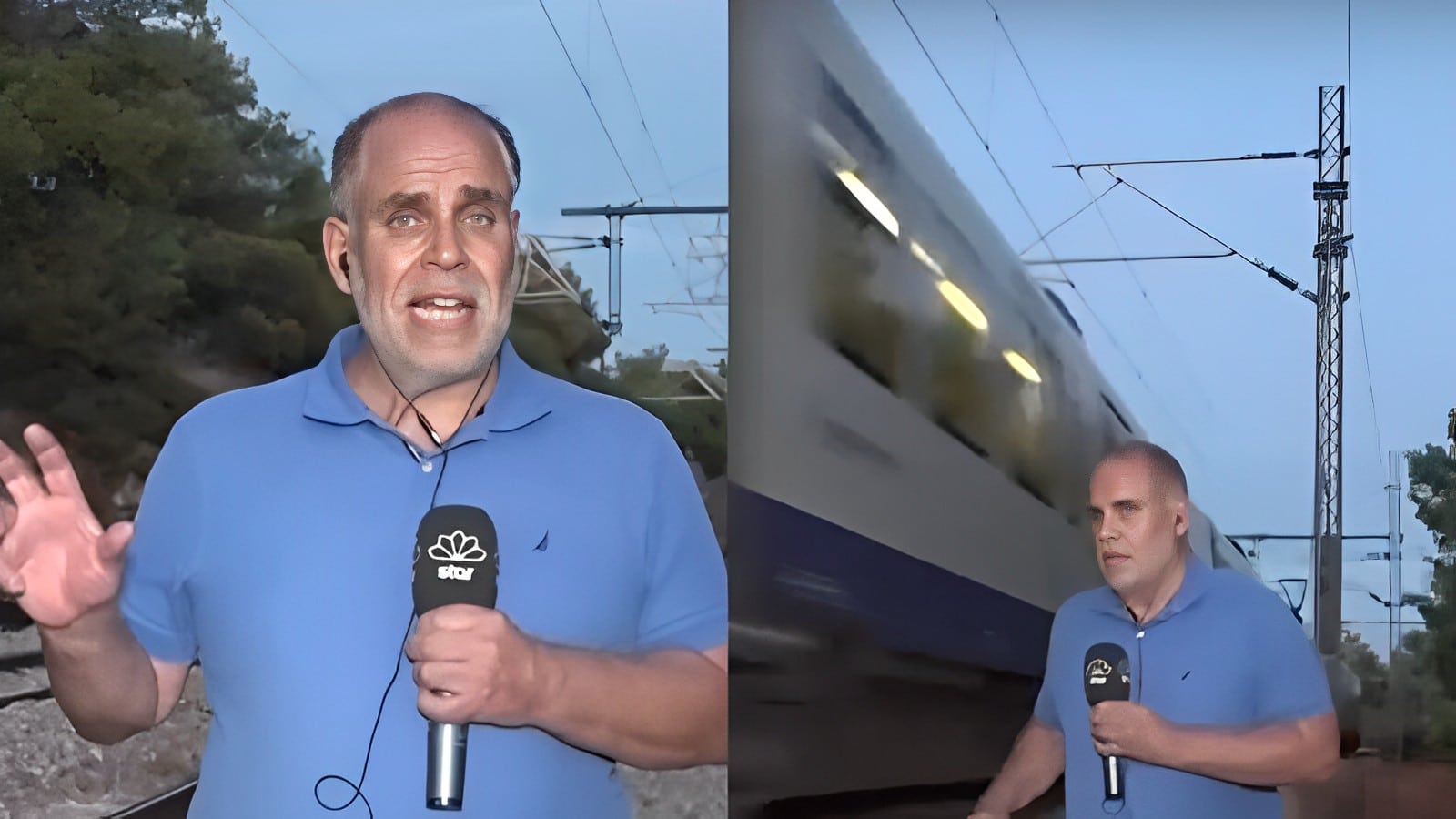 Κατά τη διάρκεια της σύνδεσης, η κόρνα του τρένου ακούστηκε και ο δημοσιογράφος έσπευσε να απομακρυνθεί. «Τώρα έρχεται το τρένο» είπε χαρακτηριστικά και παραμέρισε.
