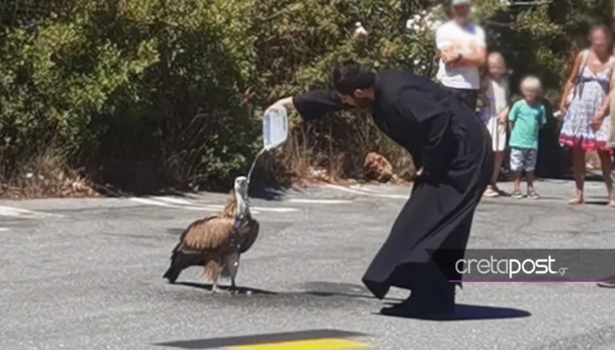 Κρήτη: Ιερέας έδωσε νερό σε εξαντλημένο άγριο πτηνό