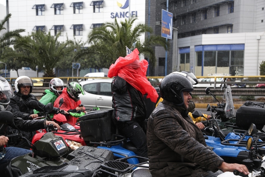 Περίπου 100 ιδιοκτήτες τετράτροχων από την Κρήτη έφτασαν το πρωί στον Πειραιά και αφού ενώθηκαν με συναδέλφους τους από την υπόλοιπη Ελλάδα έμειναν για περίπου τρεις ώρες στη συμβολή της λεωφόρου Συγγρού με την λεωφόρο Αμφιθέας και στη συνέχεια πραγματοποίησαν μοτοπορεία προς το υπουργείο Μεταφορών.