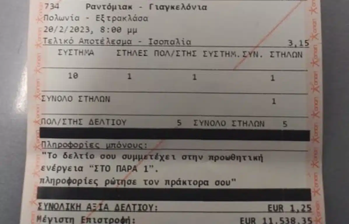 Λάρισα: Με 1,25 ευρώ κέρδισε 11.538 ευρώ στο «Στοίχημα» – Τα 10 ματσάκια και η «έμπνευση»
