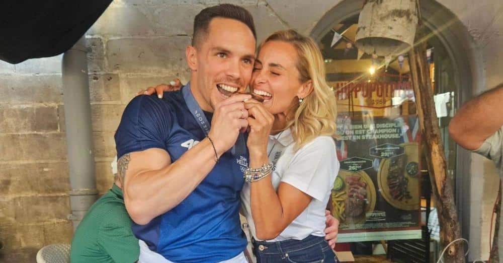 Μόλις ο Ολυμπιονίκης πλησίαζε, άρχισαν να ηχούν κόρνες, ενώ η ίδια του ετοίμασε πανό. Οι κόρες τους, έτρεξαν στην αγκαλιά του και του έδωσαν τις ζωγραφιές που του ετοίμασαν.