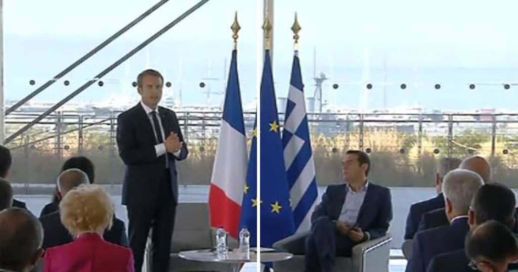 Χωρίς τον Σταυρό αλλά με μια λόγχη στην κορυφή του ιστού της, τοποθετήθηκε η ελληνική σημαία κατά τη διάρκεια της συνάντησης του Πρωθυπουργού Αλέξη Τσίπρα, με τον Γάλλο Πρόεδρο Εμμανουέλ Μακρόν.
