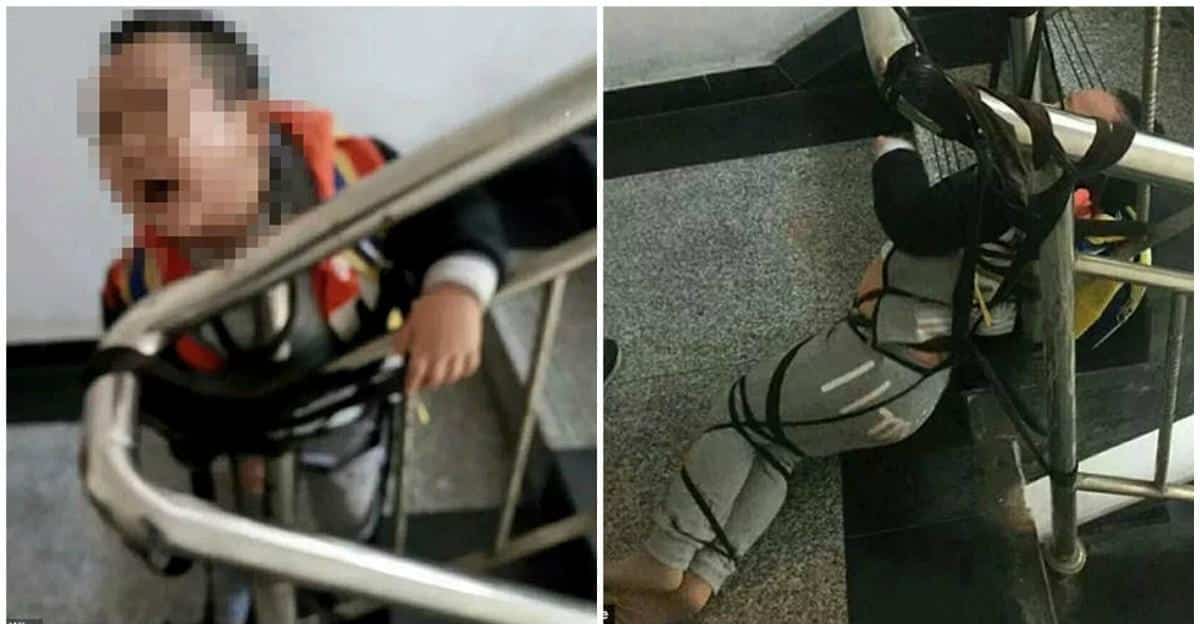Μία μητέρα από την Κίνα έδεσε τον μικρό της γιο στα κάγκελα της σκάλας επειδή ο πρώην σύζυγός της δεν της έδωσε 1.000 γιουάν (128€) από τα λεφτά που συμφώνησαν να της δίνει για να φροντίζει το παιδί τους.