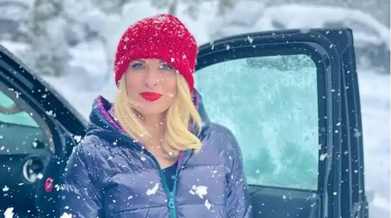 Με αυτή την ευκαιρία η ίδια απολαμβάνει το χιόνι μαζί με την οικογένειά της.