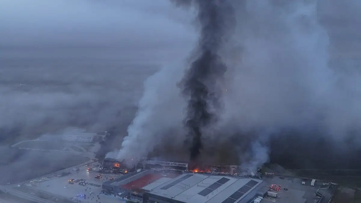 Στο κτήριο το οποίο και καταστράφηκε εντελώς. Η έκρηξη σημειώθηκε στο κέντρο του κτηρίου και η φωτιά επεκτάθηκε γρήγορα.
