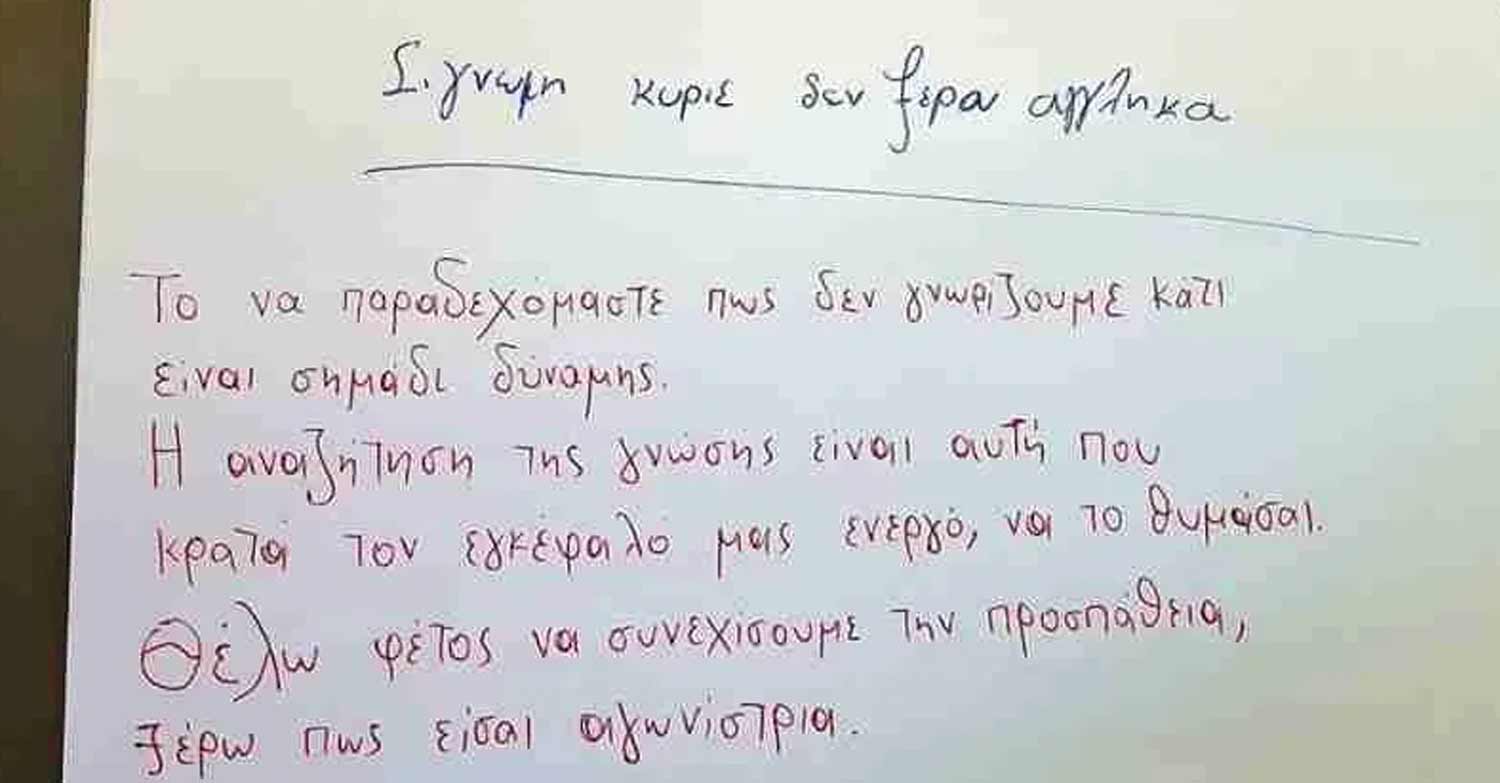 Και τότε ο δάσκαλος των αγγλικών δεν έβαλε βαθμό. Αλλά έγραψε αυτό.