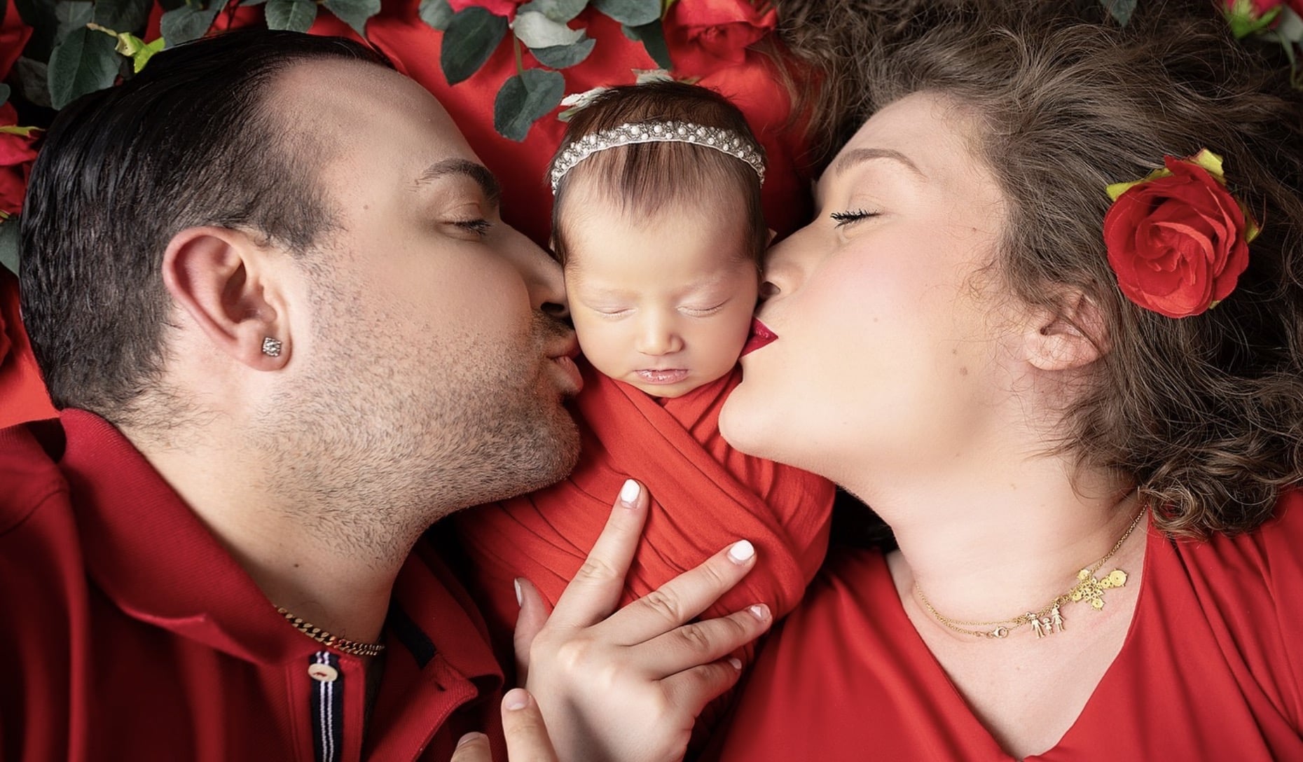 Στη νέα τους ανάρτηση στο instagram το ζευγάρι μοιράστηκε στιγμιότυπα από τη φωτογράφιση που έκανε με την κόρη του στο κατακόκκινο σκηνικό γεμάτο τριαντάφυλλα.