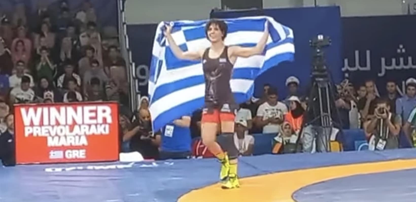 Η Μαρία Πρεβολαράκη επικράτησε 3-1 της Τουρκάλας Γετγκίλ και κατέκτησε το χρυσό μετάλλιο στα 53κ. της ελευθέρας πάλης στους Μεσογειακούς αγώνες.