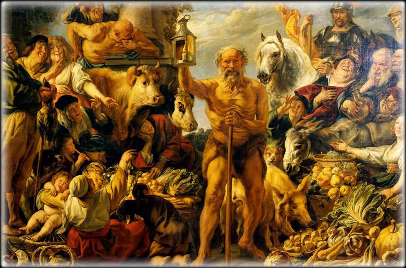 Μία μέρα ο Διογένης έτρωγε ένα πιάτο φακές καθισμένος στο κατώφλι ενός τυχαίου σπιτιού.
