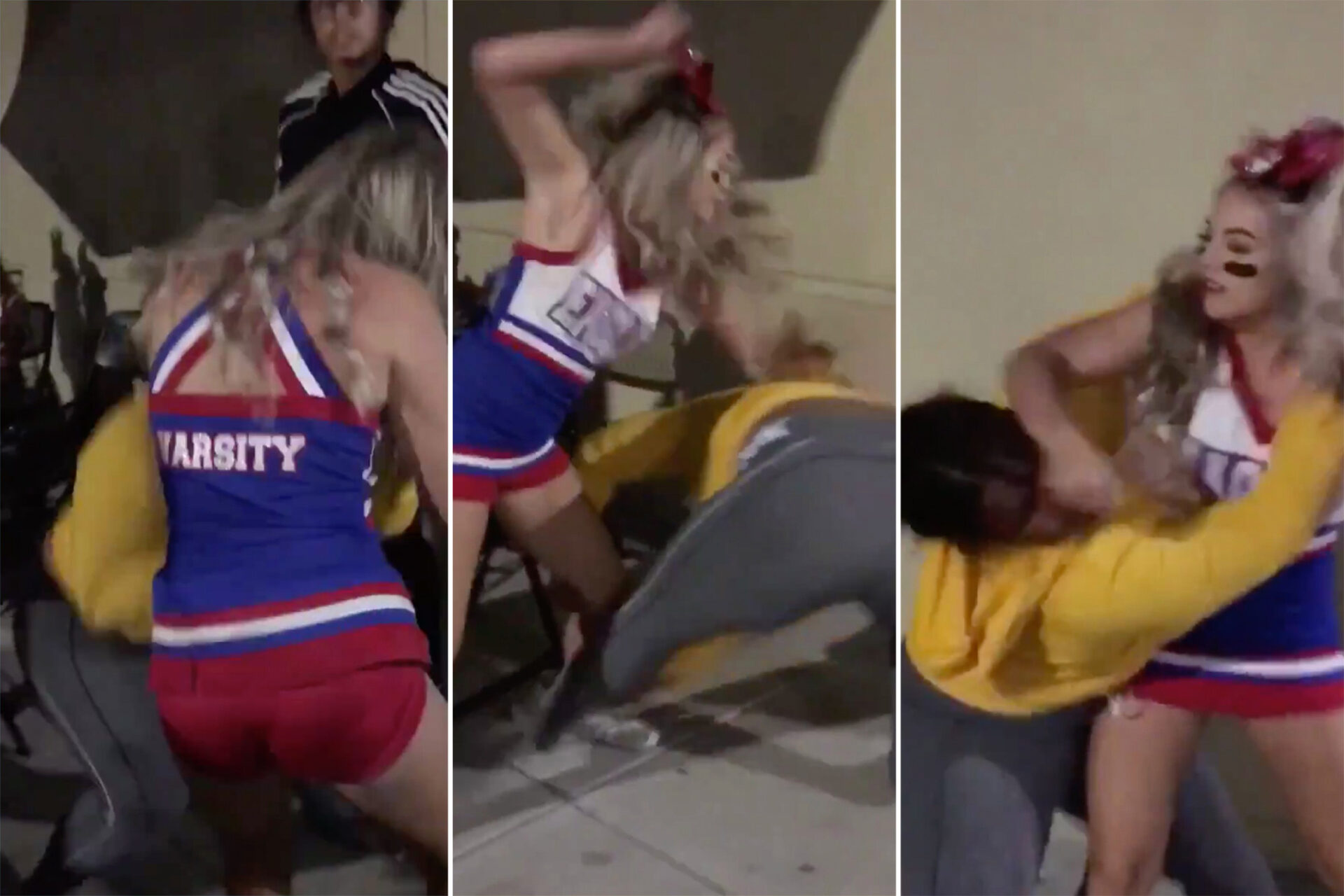 Το άγριο ξύλο μεταξύ Cheerleader σε High School της Καλιφόρνιας κατέγραψε σε βίντεο μία από τις κοπέλες που παρακολουθούσαν διά ζώσης όσα διαδραματίστηκαν εκείνη την ημέρα στις σχολικές εγκαταστάσεις.