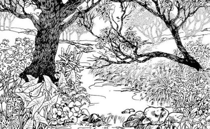 Νέα οπτική ψευδαίσθηση με μια φωτογραφία από ένα ήρεμο δάσος. Η εικόνα κοινοποιήθηκε ως παζλ τόσο για παιδιά όσο και για ενήλικες.