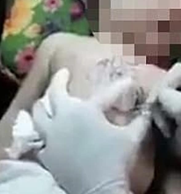 Το βίντεο που πιστεύεται ότι τραβήχτηκε στο Βιετνάμ δείχνει το μωρό να δυσανασχετεί, καθώς του κάνουν το τατουάζ.