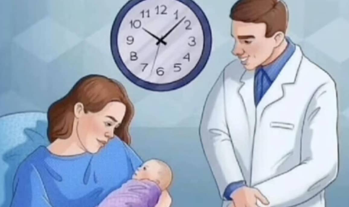 Στην εικόνα βλέπεις μια μητέρα να κρατά το νεογέννητο μωρό της, έναν γιατρό να στέκεται κοντά και τη συνηθισμένη εικόνα ενός θαλάμου μαιευτηρίου σε δωμάτιο νοσοκομείου. Υπάρχει ακόμα και ένα ρολόι στον τοίχο. Η αποστολή σου; Να εντοπίσεις το κρυμμένο λάθος.