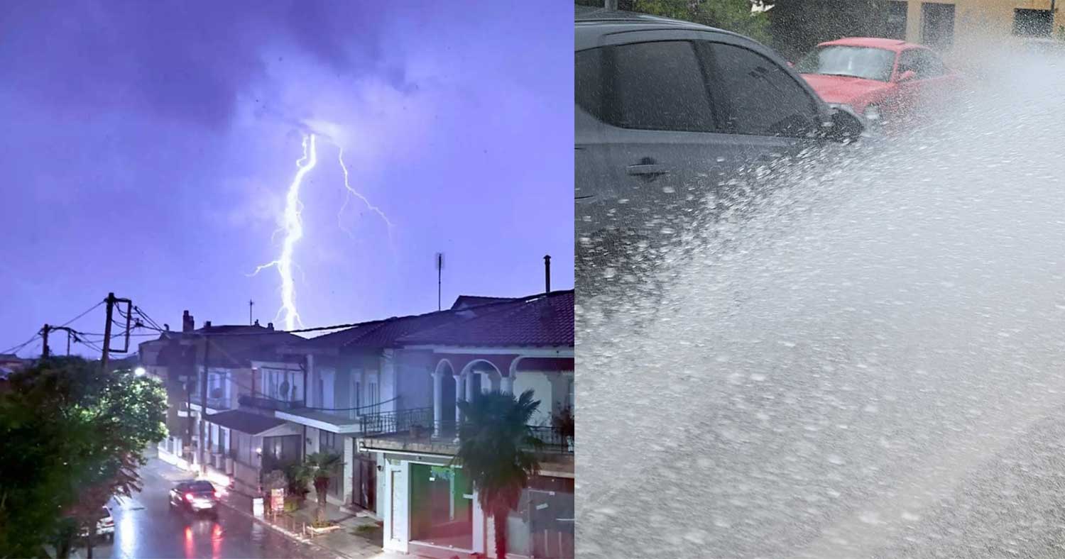 Λίγο μετά τις 4 το απόγευμα της Κυριακής την πόλη έπληξαν καταρρακτώδεις βροχές και χαλαζοπτώσεις.