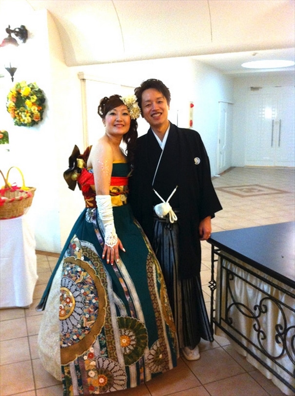 Διπλώνοντας τα μανίκια προς τα κάτω και δένοντάς τα με έναν διακοσμητικό φιόγκο, τα παραδοσιακά κιμονό μετατρέπονται σε κομψά στράπλες φορέματα. Το καλό είναι, ότι επειδή οι αλλαγές δεν είναι δραστικές, τα φορέματα μπορούν να γίνουν και πάλι κιμονό. Οπότε, αντί να πάρουν ένα νυφικό που θα φορέσουν μια φορά στην ζωή τους, γιατί να μην δοκιμάσουν κάτι διαφορετικό;