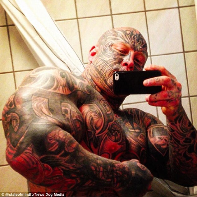 Ολόκληρο το κορμί του είναι γεμάτο τατουάζ κάθε μεγέθους. Και αυτά σε συνδυασμό με το παρουσιαστικό του, προκαλεί τρόμο.