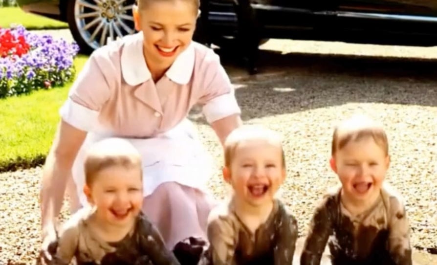 Η νταντά — η Κλάρα Παπαδοπούλου, πρόσφατα προσληφθείσα — σήκωνε τα χέρια της ενθαρρυντικά και επιβράβευε τα τρίδυμα που ήταν βουτηγμένα στις λάσπες.