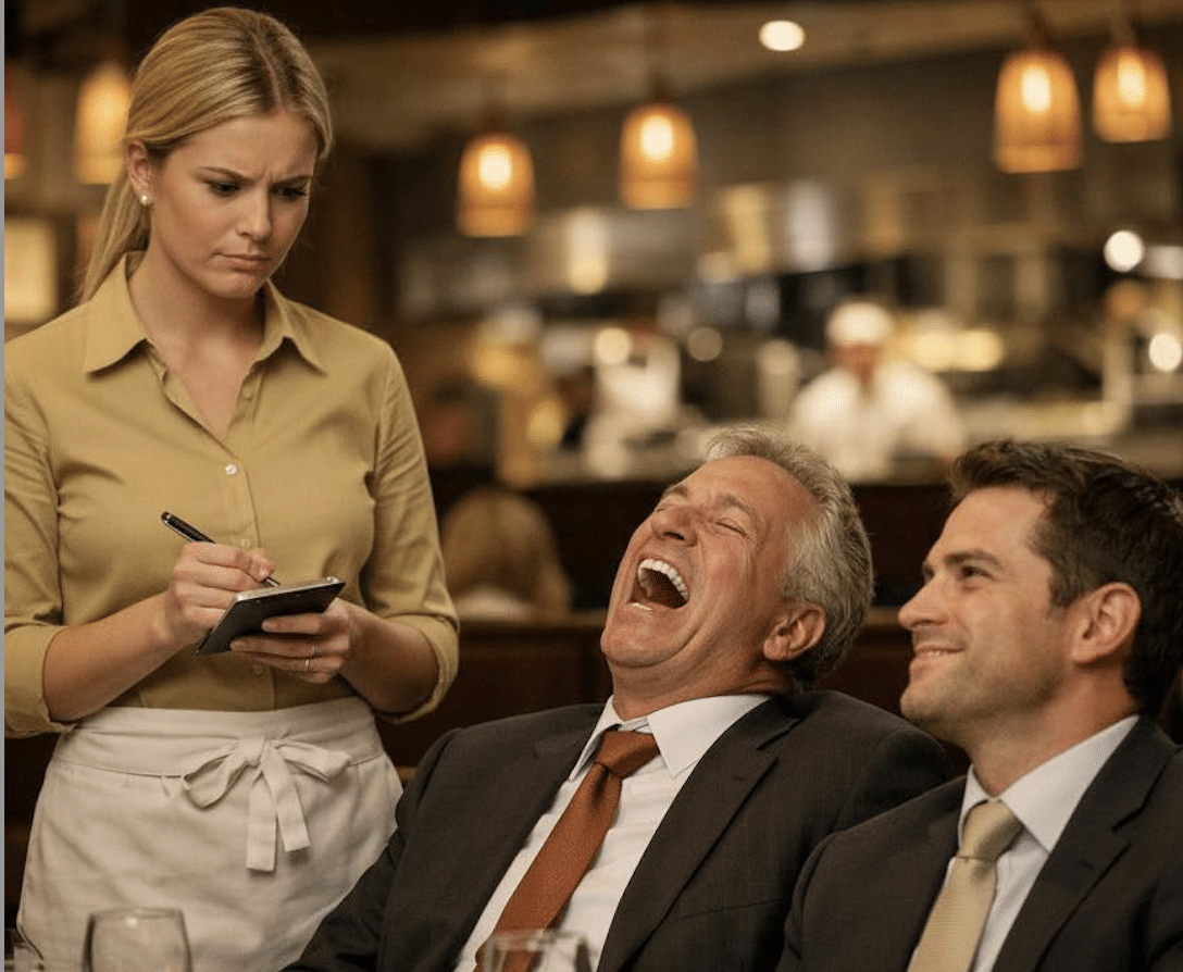 Στο τραπέζι δώδεκα, ένας άντρας με ραμμένο στα μέτρα του ανθρακί κοστούμι χτυπούσε τα δάχτυλά του στο λευκό τραπεζομάντιλο. Ένα βαρύ χρυσό ρολόι άστραφτε στον καρπό του. Απέναντί του, δύο συνεργάτες γελούσαν υπερβολικά δυνατά με τα σχόλιά του.