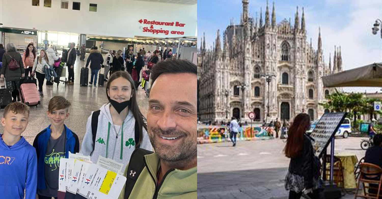 Όπως εξηγεί στη λεζάντα που συνοδεύει το στιγμιότυπο, βρίσκονται στο αεροδρόμιο του Μιλάνο. «Φύγαμε», έγραψε ο παρουσιαστής. Από τη φωτογραφία λείπει η σύντροφός του και η μικρότερη κόρη του, Βαλέρια.