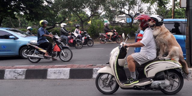 Ο λόγος για τον Ace και τον Armani που καβαλάνε τη μοτοσικλέτα και σκίζουν τον άνεμο. Μόνο που δεν πρόκειται για δύο ανθρώπους, αλλά για έναν σκύλο και τον ιδιοκτήτη του που βάζουν κράνος και γυαλιά, ανεβαίνουν στη μηχανή και κάνουν πολλές διαδρομές στην πόλη προκαλώντας τα βλέμματα οδηγών και περαστικών.