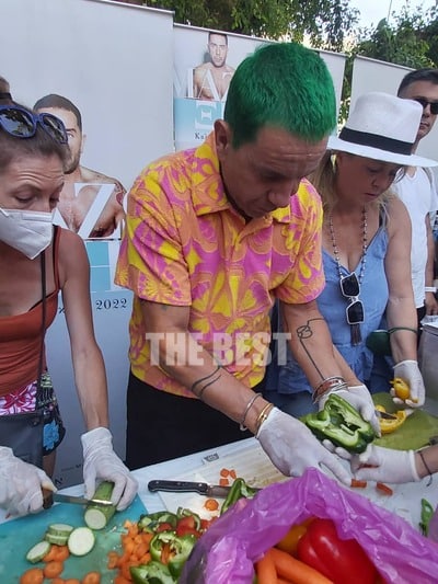 Αξίζει να σημειώσουμε ότι ο  Γιώργος Μαζωνάκης, στο πλαίσιο της επίσκεψης του στην Πάτρα για την συναυλία που πρόκειται να πραγματοποιήσει απόψε, βρήκε την ευκαιρία να συνδράμει στο έκτακτο μαγείρεμα που διοργάνωσε ο ”Άλλος Ανθρωπος” στην καρδιά της πόλης, “σήκωσε μανίκια” και άρχισε να ψιλοκόβει τα λαχανικά για το κριθαράκι με σάλτσα λαχανικών που περιλαμβάνει μεταξύ άλλων το μενού.