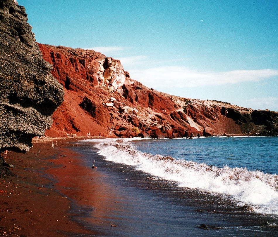 5. Κόκκινη παραλία στη Σαντορίνη. Μια παραλία με εντυπωσιακή κατακόκκινη άμμο. Το καλοκαίρι γεμίζει τουρίστες και οι καταδύσεις επιβάλλονται, αφού ο βυθός της παρουσιάζει μεγάλο ενδιαφέρον, σύμφωνα με τις σχετικές αξιολογήσεις και κριτικές.