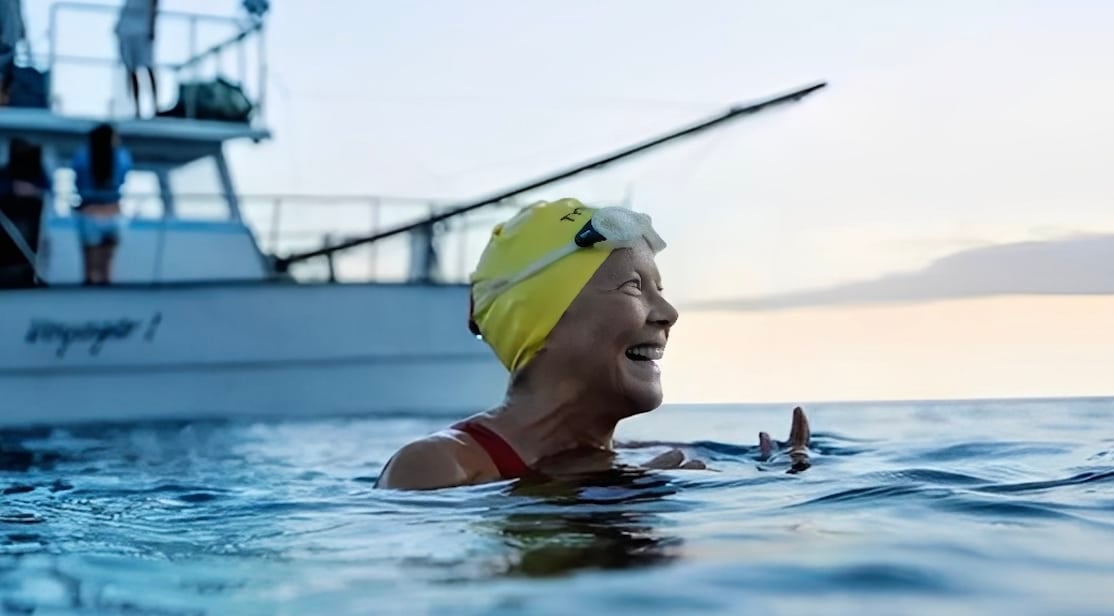 Υπόθεση: Η ταινία «Nyad» αφηγείται την πραγματική ιστορία της μαραθωνοκολυμβήτριας Νταϊάνα Νάιαντ (Diana Nyad), η οποία, σε ηλικία 60+, αποφασίζει να κάνει το άλμα της ζωής της: να κολυμπήσει από την Κούβα μέχρι τη Φλόριντα -πάνω από 100 μίλια ανοικτής θάλασσας.