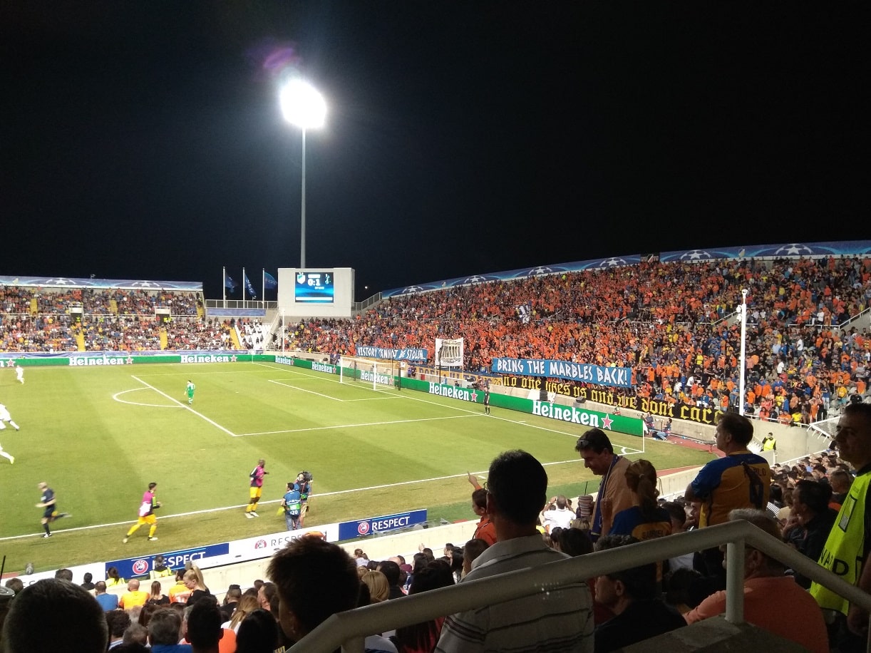 Ένα μεγάλο πανό, με το οποίο οι οπαδοί του ΑΠΟΕΛ «υπενθύμιζαν» στους Βρετανούς τα κλεμμένα μάρμαρα του Παρθενώνα, υψώθηκε στην εξέδρα του ΓΣΠ, με αφορμή την αναμέτρηση της κυπριακής ομάδας με την Τότεναμ, στο πλαίσιο των ομίλων του Champions League.