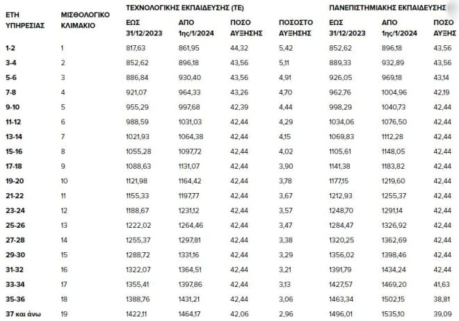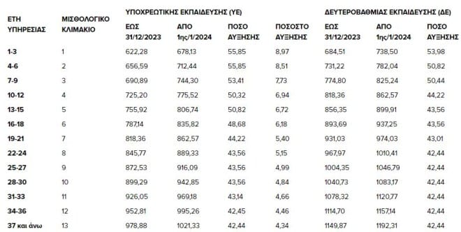 Πόσο αυξάνονται από 1/1/2024 οι καθαροί βασικοί μισθοί των πολιτικών δημοσίων υπαλλήλων / Πηγή: Ελεύθερος Τύπος