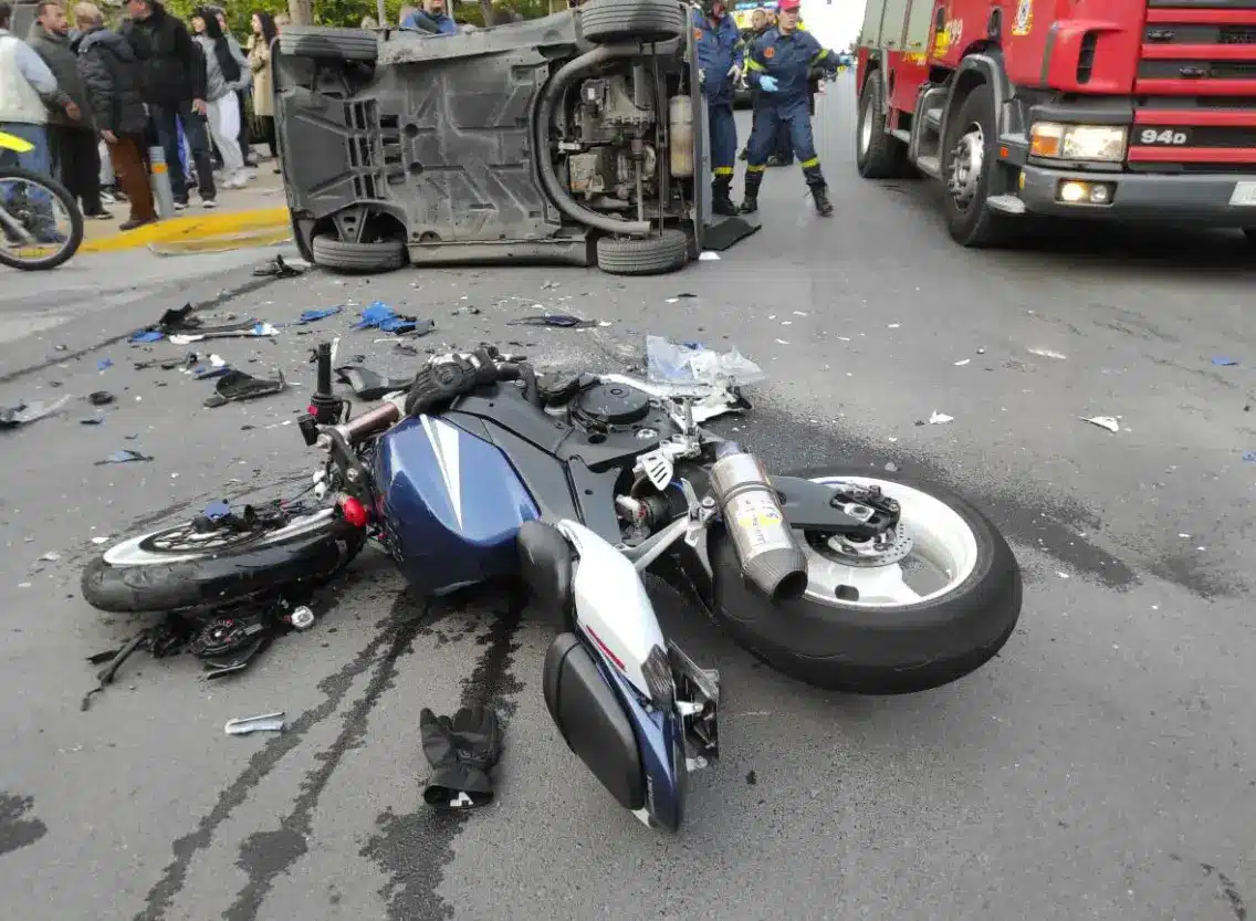 Εκείνη την ώρα, ένα μικρό επιβατικό αυτοκίνητο που μετέφερε ως επιβάτες ένα ζευγάρι διέσχιζε τη μεσαία λωρίδα της οδού Αθηνών. Κάτω από αδιευκρίνιστες συνθήκες, το όχημα ξέφυγε από την προβλεπόμενη πορεία του και κινήθηκε ανεξέλεγκτα προς τη δεξιά λωρίδα. Δυστυχώς, αυτός ο ξαφνικός ελιγμός είχε ως αποτέλεσμα τη σύγκρουση με μια μοτοσυκλέτα που μετέφερε δύο αναβάτες που ταξίδευαν στη δεξιά λωρίδα.