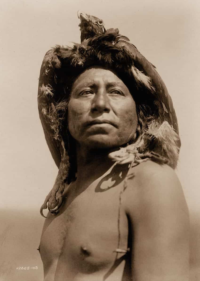 Άντρας από την φυλή Hidatsa μαζί με έναν αετό, 1908.